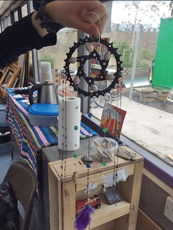 June started off with scrap workshops off site at the Meadows festival, we made suncatchers with old cds and lots of trimmings, buttons, shells, paint, glitter…..it was so beautifully sunny they looked glorious spinning in the wind. Later in the month there was a dreamcatcher workshop held on the scrapstore bus. This workshop was part of the cycling festival and was hosted by upcycled world – particpants made some excellent dream catchers from old bike parts, wool and threads. It’s great for the bus to be used by other groups, it’s a real asset for community art.