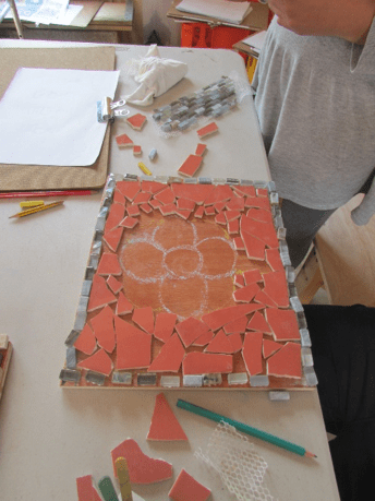 As the kids really enjoyed it and we get a lot of people enquiring, we’ve decided to continue the open mosaic workshops on a Saturday. Anyone can come to the orange bus and try out a bit of mosaic art. We still have a few larger panels to finish for the wikihouse so come down between 12 and 4 if you fancy a being part of the mosaic project.