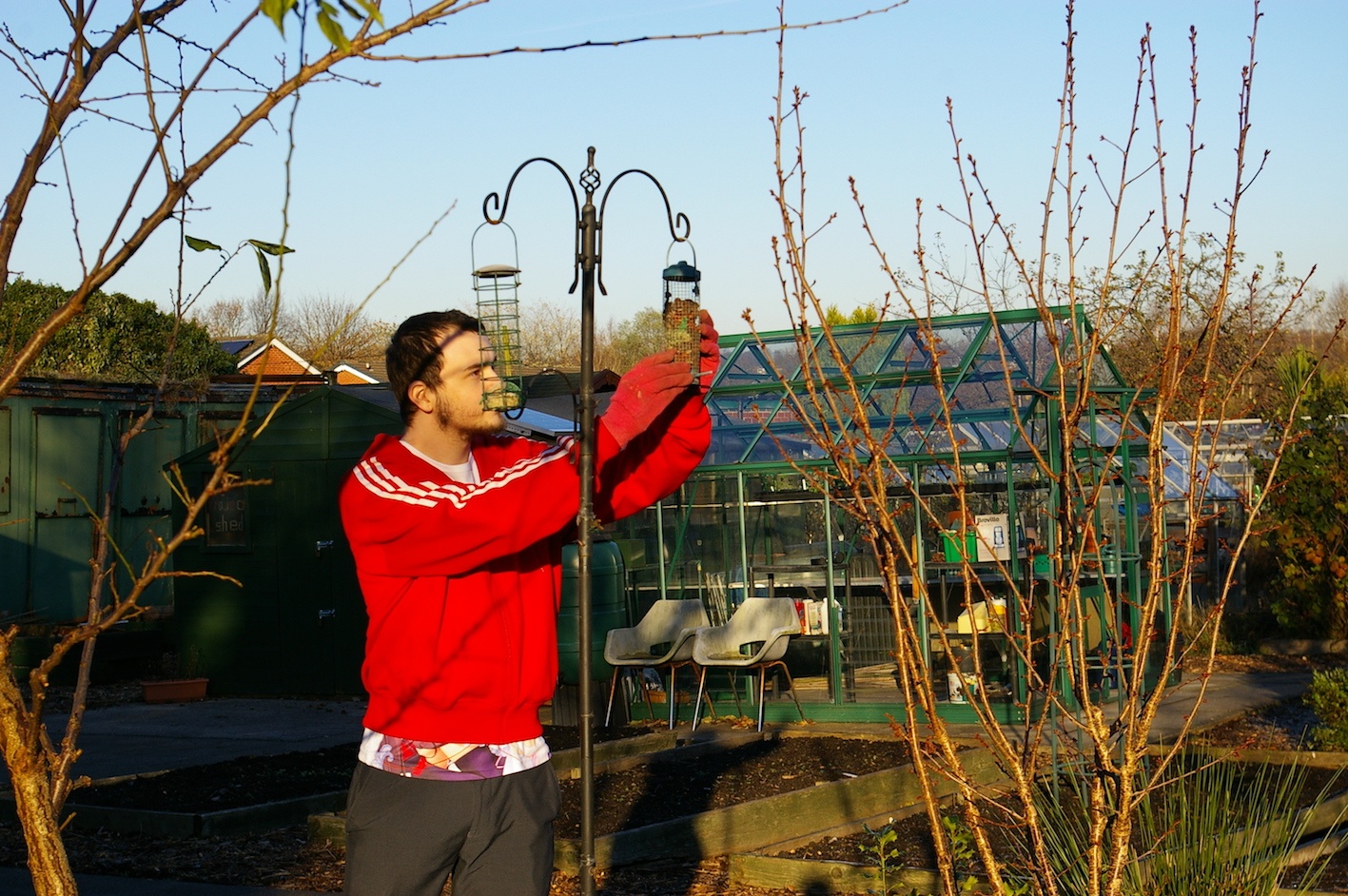 Despite the cold weather one of Lower Kersal Young People Group attends the allotment watering the winter vegetables, and taking cutting from the herb garden for a cooking project. He also attends the wildlife bed.