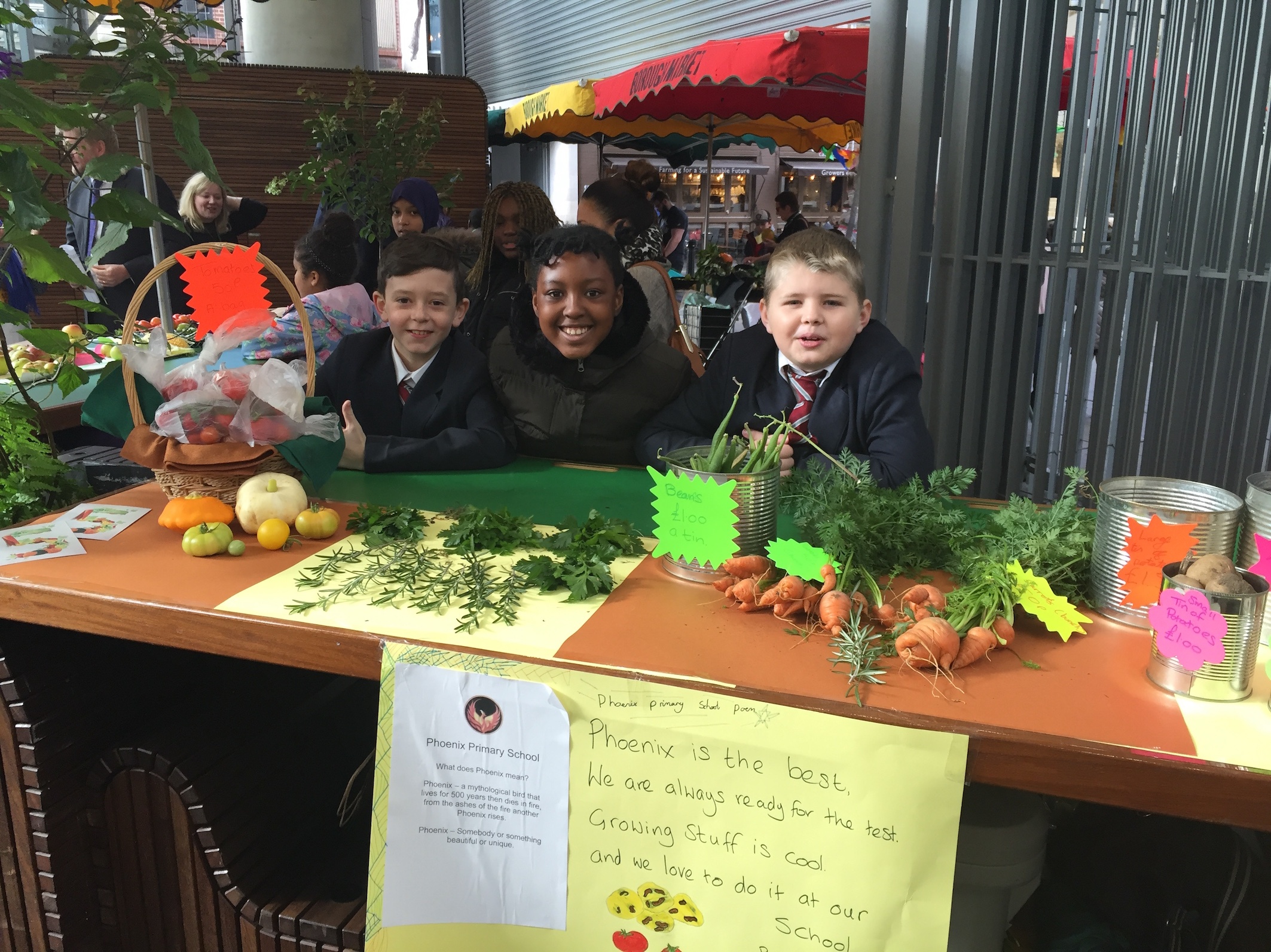 The 5th anniversary of our Young Marketeers Harvest Sale was a huge success this month with our tiny market traders raising £395 for food surplus charity FareShare. Students from 15 schools across London set up shop at Borough Market to sell their school-grown Autumn produce which included plenty of pumpkins, squash, apples, beetroot. Back in the Spring, schools received gardening training from Blue Peter Gardener, Chris Collins and a visit to borough Market to learn trade secrets on how to create a winning stall. An eye-opening visit to the FareShare depot showed students how the money they would raise would be used.
