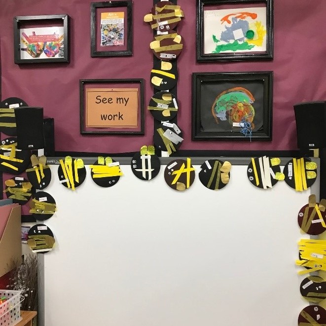 Last stop for our education team was St Peter’s Nursery in Galshiels where they were delighted to hear how much the 2-5year olds already knew about bees. And what a lovely swarm of bees welcomed them there!!