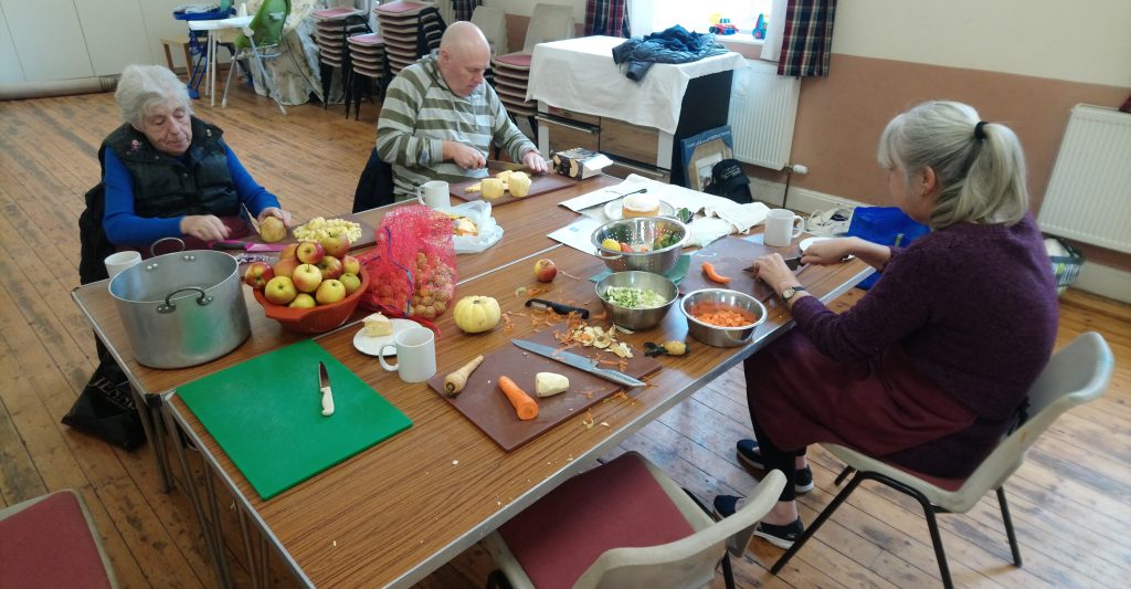 The Sunny Soups team are so proud to have hit a massive milestone: we have saved over a tonne of produce from the bin, turning it into the equivalent of 2,523 portions of soup. We make around 30 big pots of soups a week for our community freezer, relying on donations of surplus fruit and veg from our local independent greengrocer the Crunchy Carrot, from a wholesaler and sometimes from the local Co-operative and community or private gardens. We also use tins of beans and tomatoes occasionally donated by Dunbar Basics Food Bank.