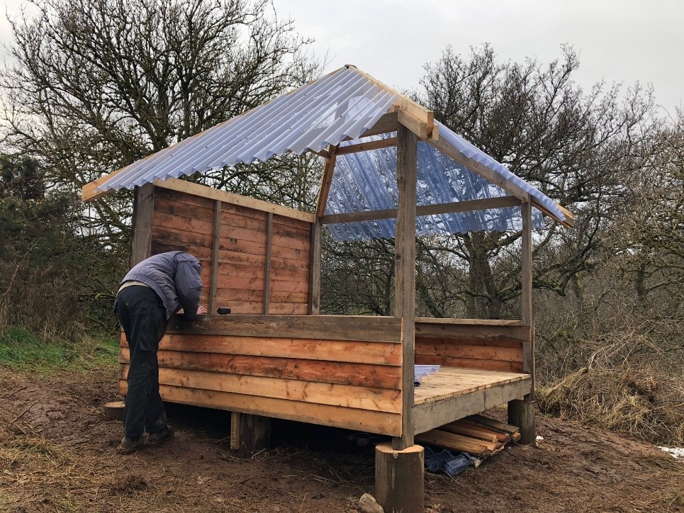 In February we continued with the build of the Musical Forest. This is being built off site as a wood workshop in Edinburgh but volunteers helped us carry materials for the Musical Forest shelter down to the woodland this month. Our woodland is located along a cycle path with no car access so many hands make light work in these situations!